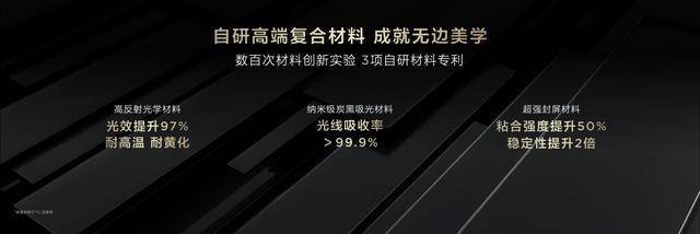 TCL 在材料创新领域火力全开,历经数百次实验,斩获3项自研材料专利,全面升级电视各部分结构。其中,自研的高反射光学材料,堪称材料界的 “耐热卫士”,不仅耐高温耐黄化,光效较普通材料更是飙升 97%;纳米级炭黑吸光材料同样惊艳,能达到超过99.9%的光线吸收率,使对各层级各部位的光线都能被精准调控,实现光影的细腻呈现;对粘合强度提升50%的超强封屏材料的应用,更是 “一箭双雕”,在实现极景·无黑边外观的同时,稳定性也提升了2倍。