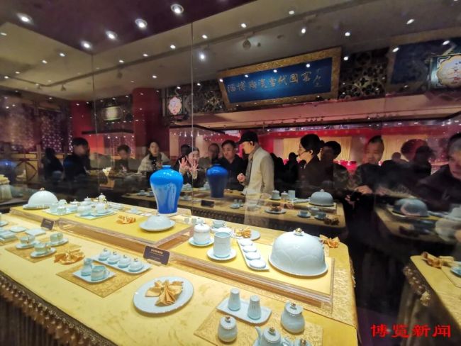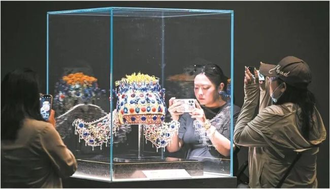 在中国国家博物馆举办的“琉光璃彩——淄博琉璃艺术展”上,游客们纷纷打卡淄博琉璃展品。(新华社发)